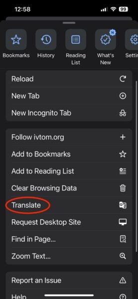 Then, if you’re on mobile, click the three dots in the lower left, and then click “Translate” (which will be displayed in your language):