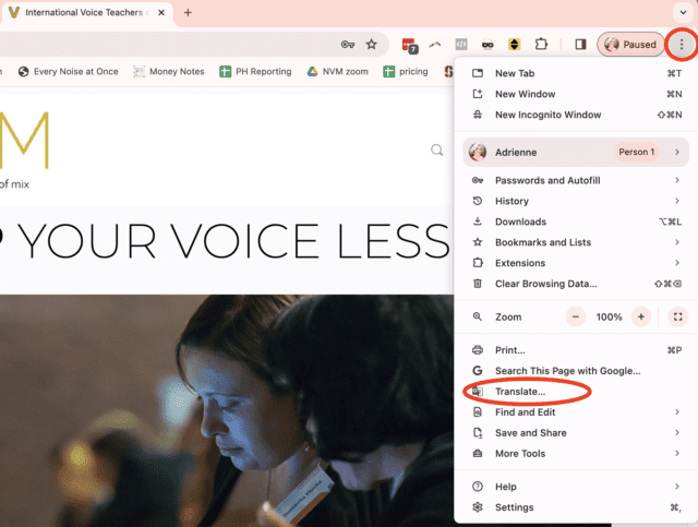 If you’re on a tablet or laptop, click the three dots in the upper right and then click “Translate” (which will be displayed in your language):